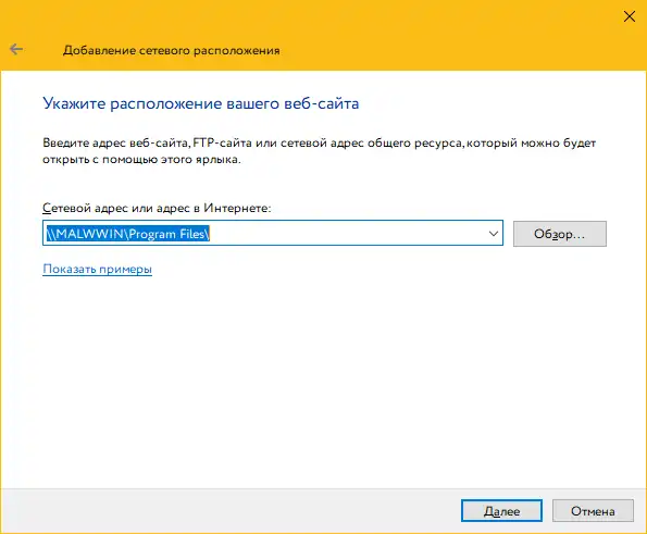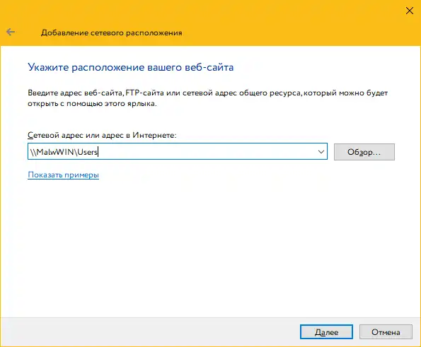 В поле "Сетевой адрес" вводим \\Имя_ПК\Users
