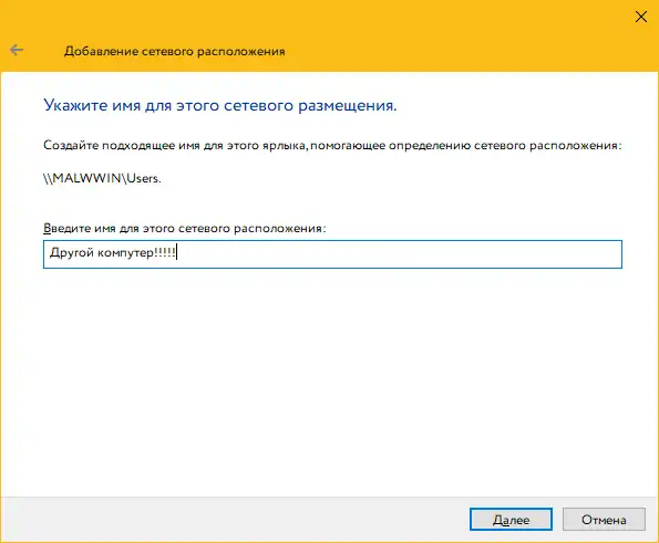 Далее вводим какое-нибудь имя, которое будет отображаться в Этом компьютере: