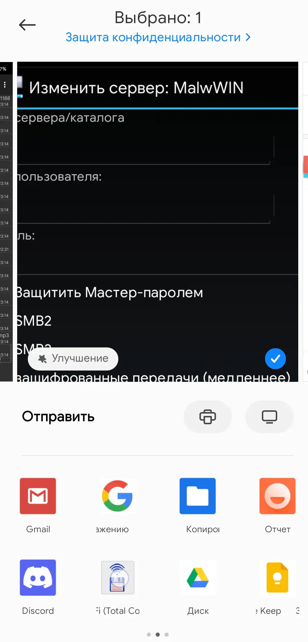Пример использования: кнопка поделиться в любом приложении arrow_right_alt Передать по WiFi.