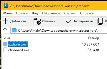 Теперь, чтобы поделиться папкой, мы открываем её в проводнике и просто прописываем в строке проводника "ezshare" и нажимаем Enter: