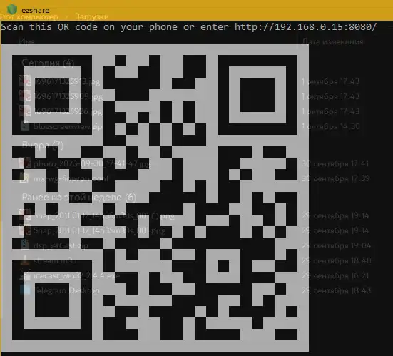 Всё, что нужно будет сделать получателю (в одной сети) - отсканировать код или ввести в браузере адрес вверху.