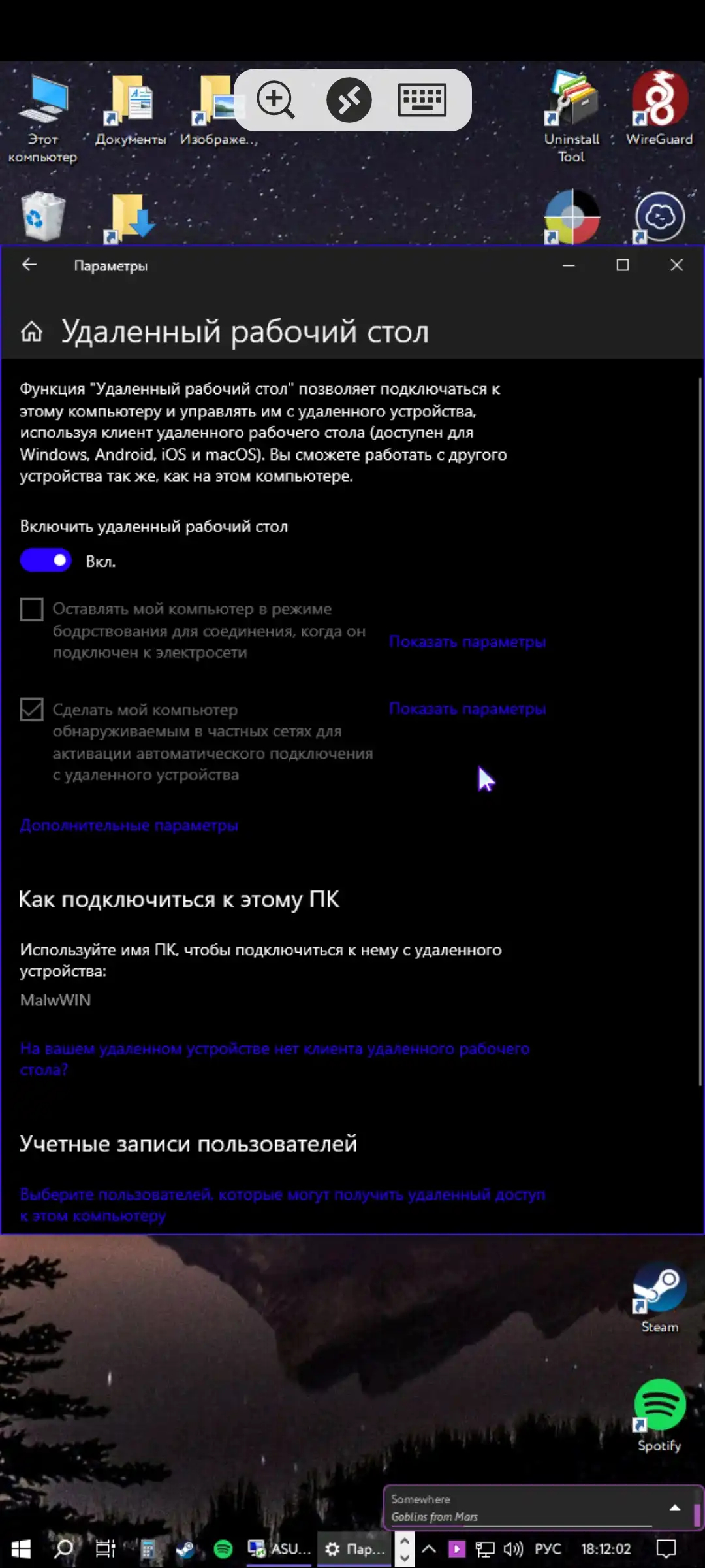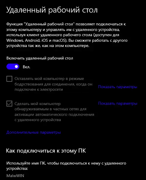Ещё можно, например, использовать удалённый рабочий стол. Совсем как на VPS с Windows. Но, к сожалению, только на Windows 10/11 Pro/LTSC (на Home этой возможности нет). Чтобы открыть возможность подключения к ПК, заходим в параметры arrow_right_alt Система arrow_right_alt Удалённый рабочий стол