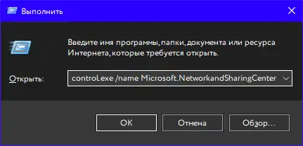 3. Чтобы включить доступ к файлам ПК в локальной сети, нужно перейти в Центр управления сетями и общим доступом. Для этого проще всего выполнить команду в Win + R: