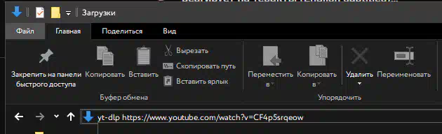 Теперь для скачивания видео открываем какую-нибудь папку и пишем в адресной строке проводникаyt-dlp *ссылка на видео*