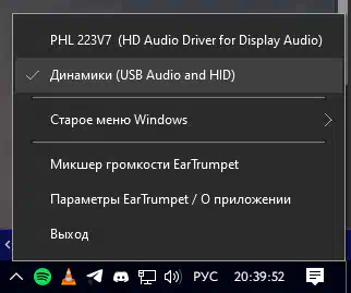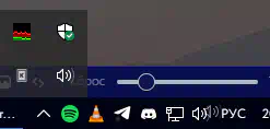 После установки он появится в «скрытых значках», переносим его на место системного значка громкости.