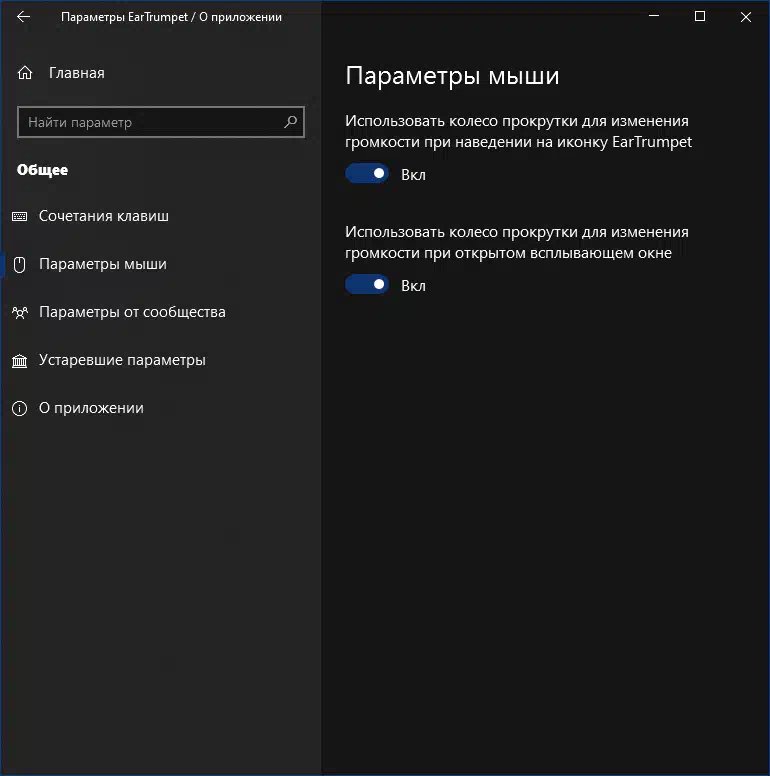 В параметрах EarTrumpet можно включить управление громкостью колесом мыши при наведении на иконку, прям как в КДЕ!