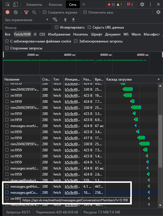 online_info = get(f'https://api.vk.com/method/users.get?fields=online,last_seen&v=5.131&user_ids={user_id}&access_token={token}').json()['response'][0]
