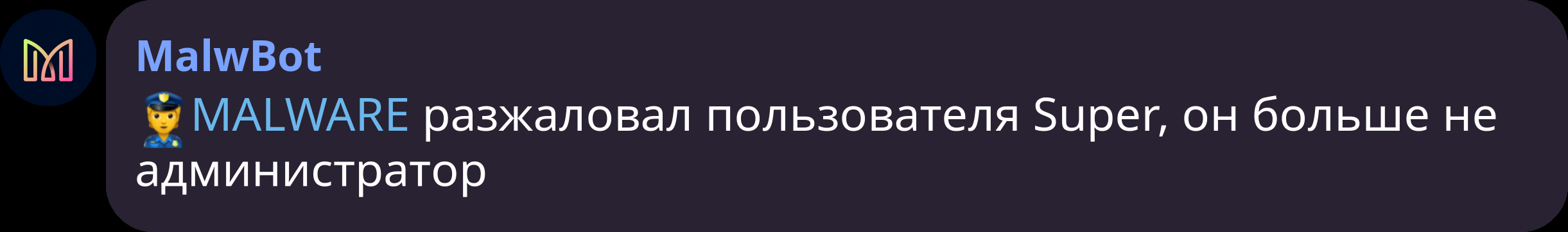 bot.send_message(config['notifications_chat_id'], ''+'['+telegram.get_entity(event.user_id).first_name+'](tg://user?id='+str(event.user_id)+') разжаловал пользователя ['+telegram.get_entity(event2['new_participant']['user_id']).first_name+'](tg://user?id='+str(event2['new_participant']['user_id'])+'), он больше не администратор')